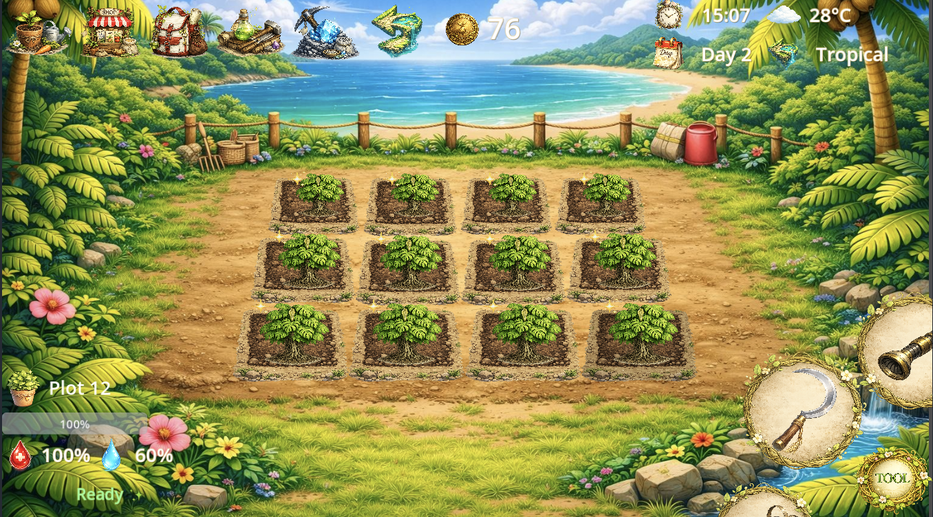 Last Garden is a dynamic simulation game where you cultivate plants across multiple islands — each with its own climate, threats, and evolving challenges.